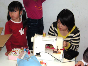 小さい子供達も、刺繍針を使ってなので自分でアップリケをつけたり、刺繍をしたりしました。